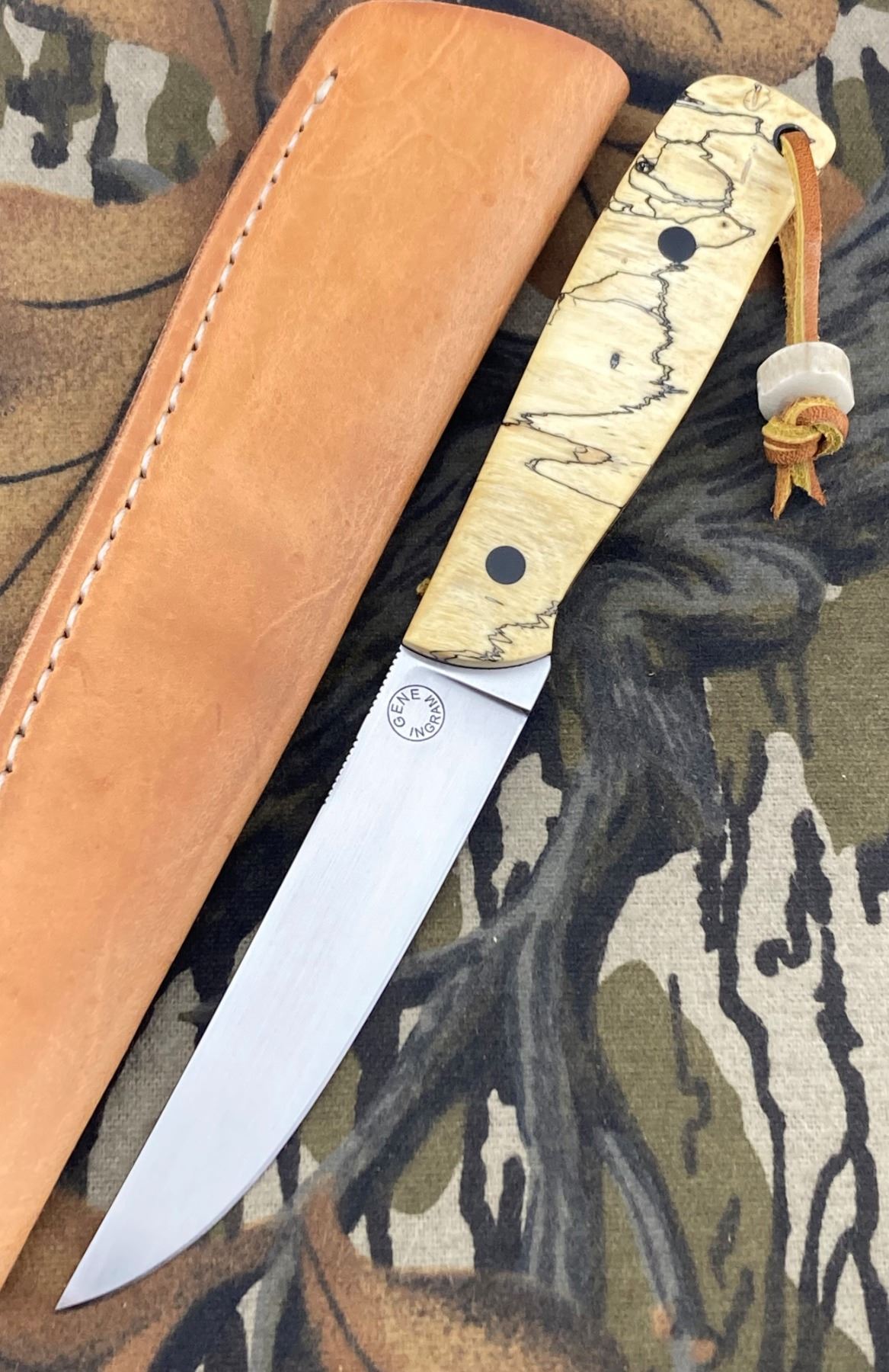 Gene Ingham has made this beautiful, custom small Boner w/CPM Magnacut fixed blade knife specifically for the DSC Foundation Gala. Measures 8.75" overall with 4.25" blade, Tamarind handle, black micarta pins and Gene Ingram's signature sheath. One-of-a-kind and a true work of art! DSC FOUNDATION THANKS CRAIG DIXON FOR THIS 100% DONATION.